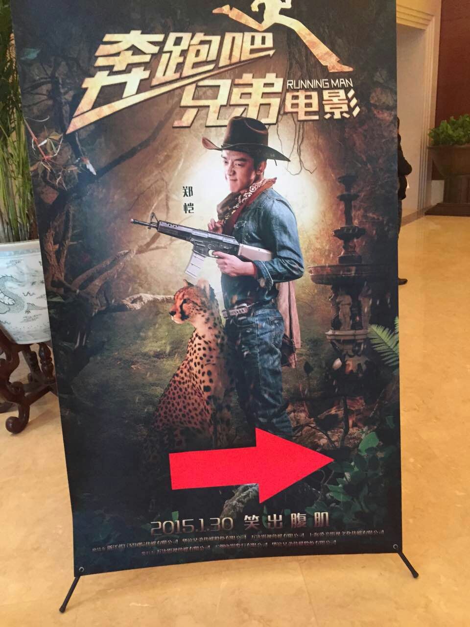 大電影“奔跑吧,兄弟”宣傳活動現場,鄭凱海報。(北京一路領先汽車租賃公司)圖